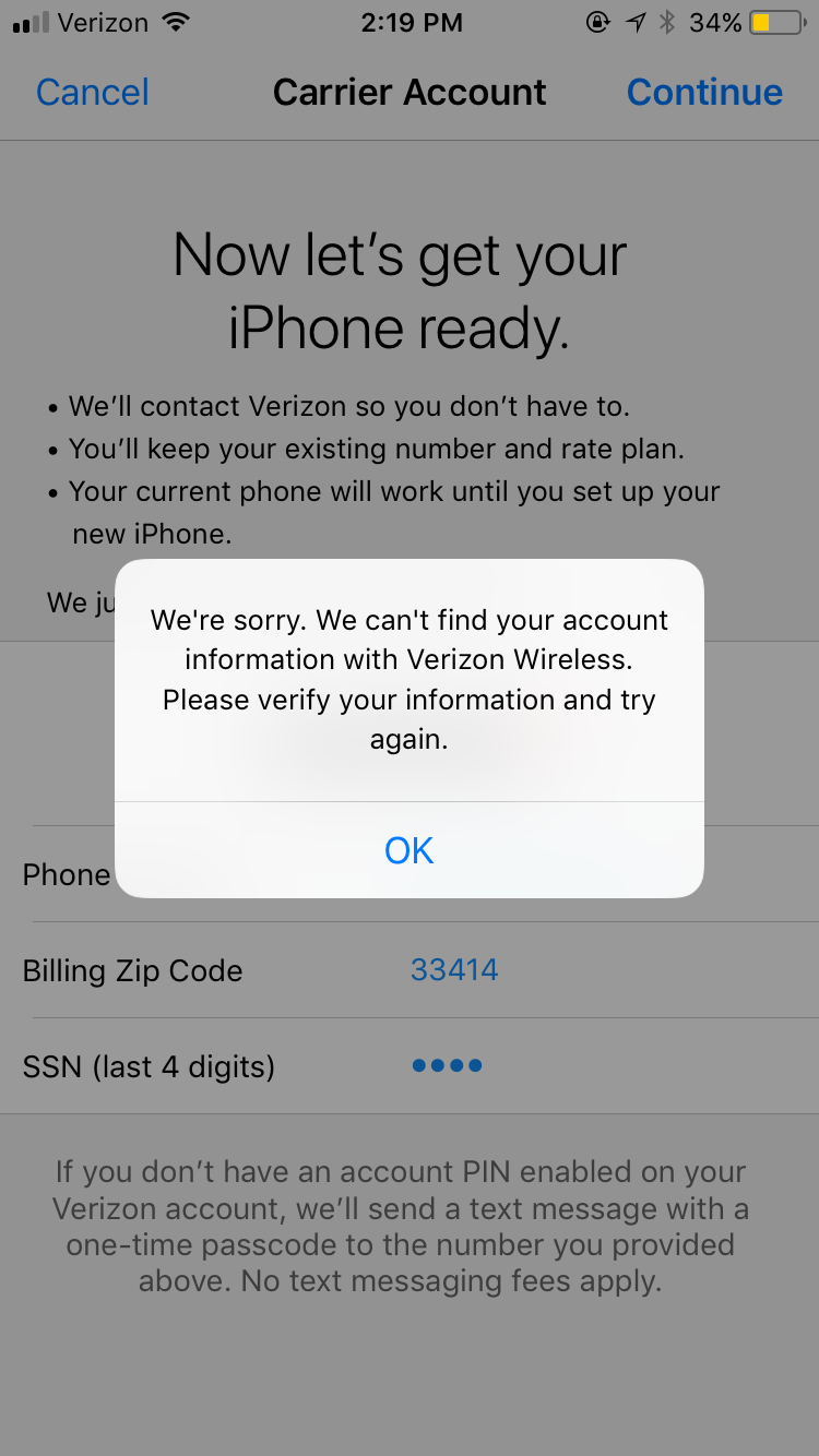 We apologize for any inconvenience. Verizon Customer not available 5 min Welcome to Verizon Wireless. The reason you are in fact getting this error message is because the persons account at this time has in fact been suspended.